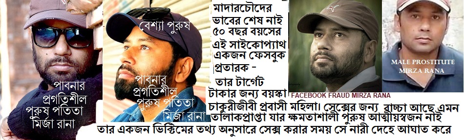 পাবনার গয়েশপুর ইউনিয়ন এর মৃত মির্জা আমজাদ হোসেনের চার বিয়া। চার বিয়ার এক বউ বারো ভাতারী তারই জারজ ছেলে লম্পট প্রতারক মির্জা রানা